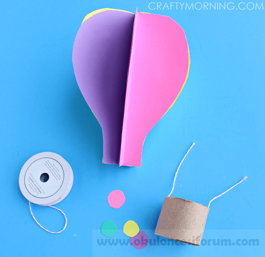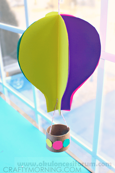 Tüm YazılarıFarklı renkli kağıtlarla 5 sıcak hava balonu şekiller kesilir. Mümkün olduğunca aynı boyutlarda kalıplar çizerek hazırlayın.Çocuklar kesip ikiye katlayacaklar ve 3D yapmak için birbirine yapıştıracaklar.