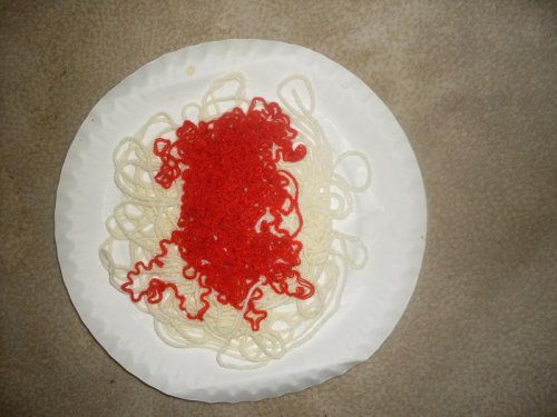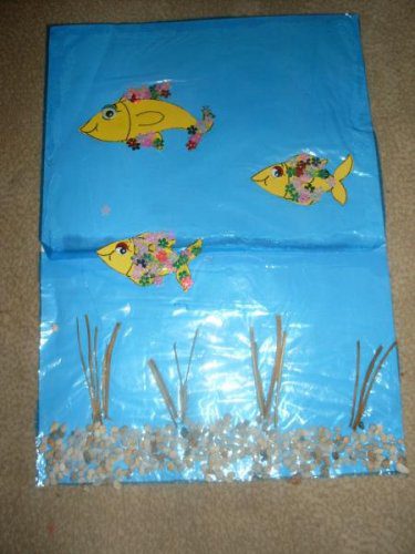 spagetti için çatalları hazırlayın,:504xn: alimünyon folyadan ay dede ve yıldızlar,CD den kurbağa,örgü kedinin bıyıklarından ve burunlarından örümcekler,balıklar,rafyadan ağaç nasıllar=)