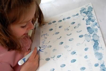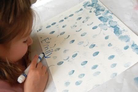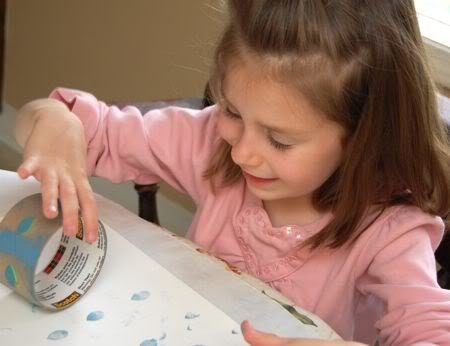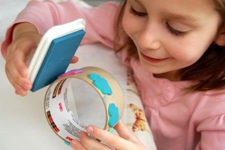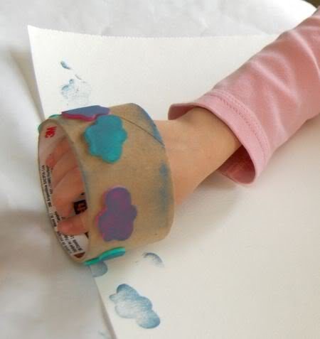 Bant ortasından baskı aleti yapılmış(bulut ve yağmur damlası)