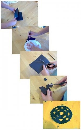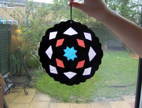 kar tanesi yapımı gibi yapıyoruz daha sonra isterseniz şu hani renkli bayram şekerlerinin jelatinleri var ya onlardan da güzel olur isterseniz kitap kapları da olur artık orası size kalmış arka kısmına yapıştırıyoruz.