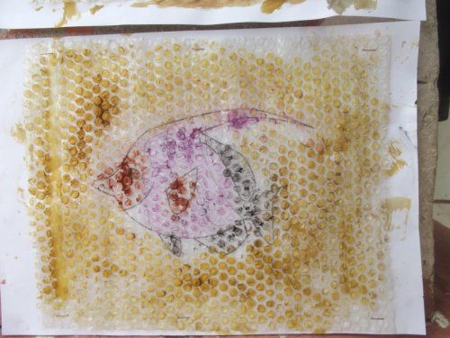Televizyon , Radyo vs yapmak için getirdiğim kutuların içinden çıkan çatpatları A4 kağıtlarına zımbaladım. Aslında desen çalışması olarka yaptırsam daha güzel olabilirdi ama böyle de güzel oldu…