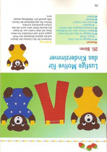 arkadaşlar kitabı yeni aldım tarattım sizlerle paylaşmak için.orada satılan oluklu kartondan da aldım.kırtasiyeden aldıklarımdan çok farklı.çünkü hep o kartonlarla yapılmış.canlı görüntü ve iyi sonuç vereceğini düşünüyorum.yalnız bir sorunum var: içinden kalıpları çıkmadı düştü mü dükkanda ne?kitap almanca ama neyseki kolay şeyler.ben uçurtmaları-sallanan atları-ayıcık ve pantalonları- en kısa zamanda uygulamayı düşünüyorum.soğanlarla biberlerde pek tatlı.