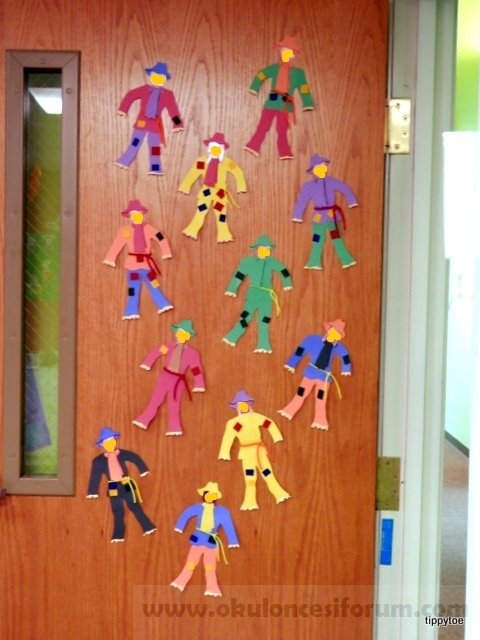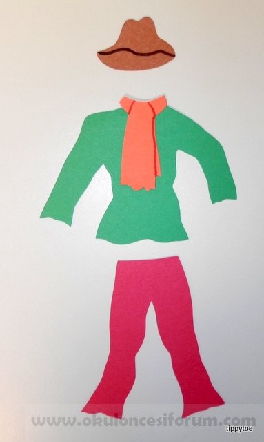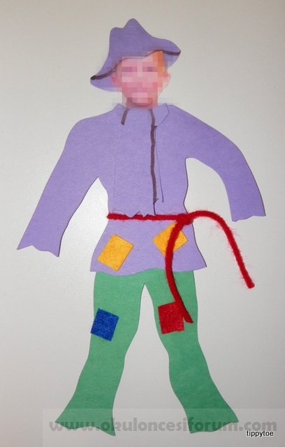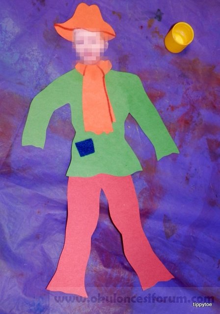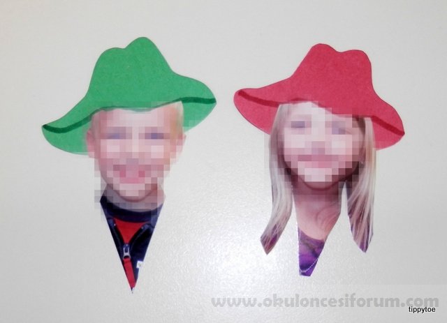 Sonra çocuklar fotoğraflarını keserek şapkaların içine koyarlar.
