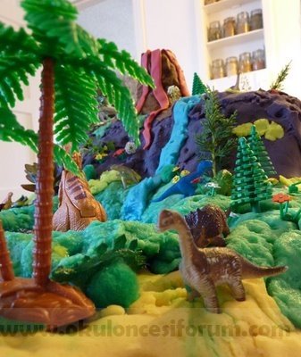 Bu devasa proje üzerinde ki oyuncakları ve taşları saymazsak tamamen artık materyal ve oyun hamuru kullanılarak yapılmış.