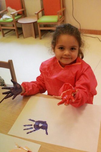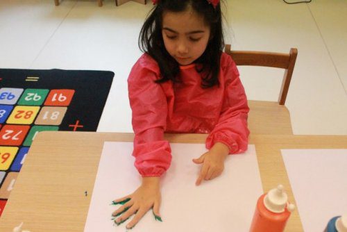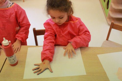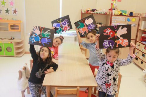 Kelebeklerimizi Yapmak Için Ellerimizi Boyayıp Kağıtlara Ellerimizi Bastık. Sonrasında Kuruttuk, Kestik Ve Kartonlara Yapıştırarak Kelebeklerimizi Tamamladık.