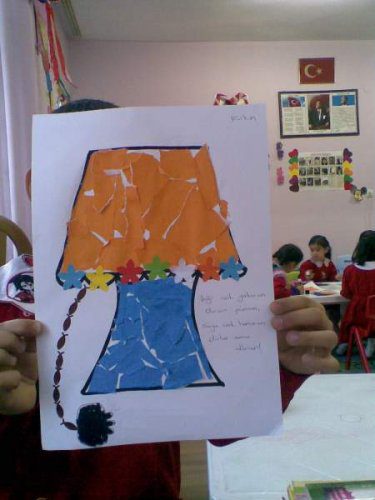 abajuru yaptılar ve ben yan tarafına küçük bir dörtlük yazdım;