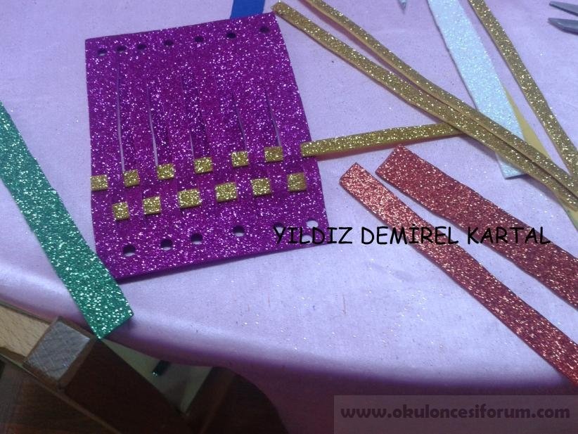 Tüm YazılarıEva dan kilim örme tekniği kullanarak sevimli kilimlerimizi yaptık yaparken şeritleri geçirmede zorlanmamak için alt üst kavramını iyice öğrendik.