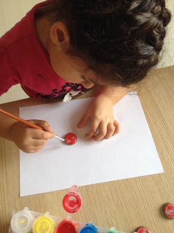 Gazoz Kapaklarını Boyayarak Uğur Böceklerimizi Yaptık Ve Sergiledik.