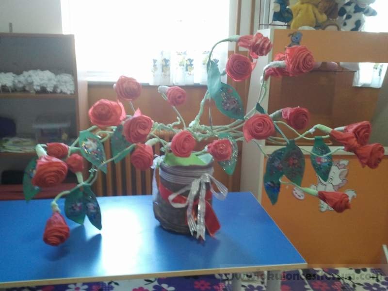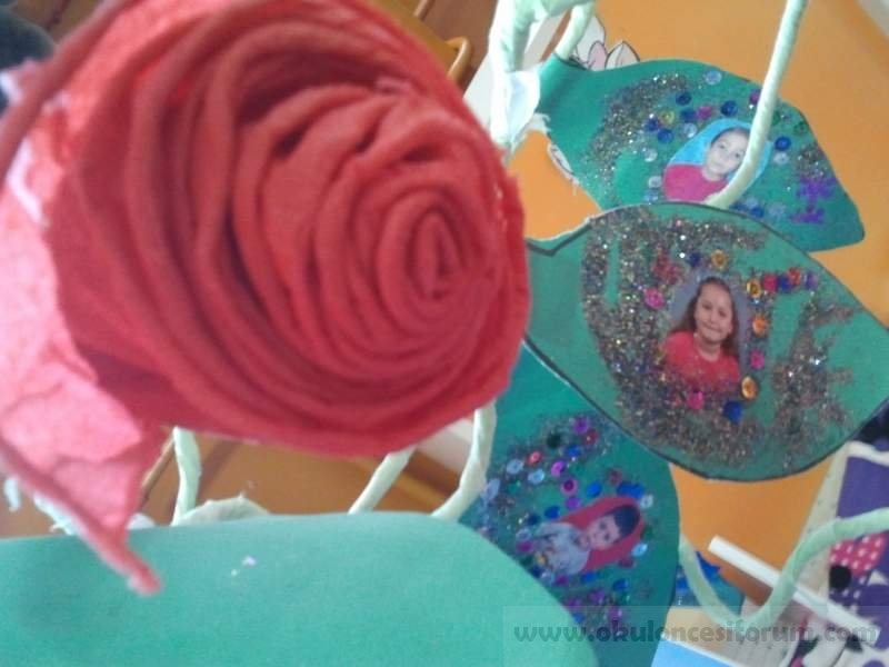 Tüm YazılarıYapraklarına çocuklar fotoğraflarını yapıştırdı. Elektrik teli kullanıldı.Grapon kağıdından güller yaptık… saksısı da şişeden…..