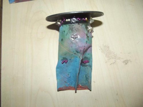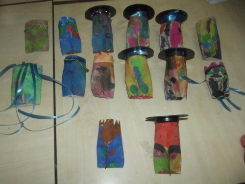 Bunlara benzer bir çalışmayı nette gördüm. Önce o çalışmaların fotolarını sonra da Güney Afrikadaki totemlerin fotoğraflarını gösterdim ve ruloları , artık materyalleri ellerine verdim. Ortaya böyle çalışmalar çıktı. (İlerleyen haftalarda tekrar yaptırmayı düşünüyorum.)