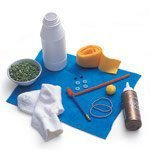 plastik danone şişesi veya plastik süt şişeleri vardı sanırım onlar kullanılabilir,şapkası ve beyaz kısmı için çorap kullanılabilir…