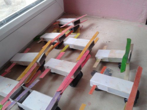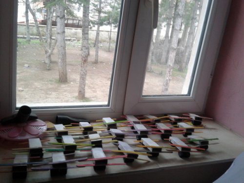 Bunlar etkinliğin bitmemiş hali. Birer de pervane koyup uçakları süsledik. Fakat onlar diğer kamerada kalmış. Eklerim bir ara.