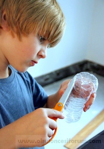 Boş bir su şişesi,bir çorap, gıda boyaları,bulaşık deterjanı,koli bandı, sığ bir kap..