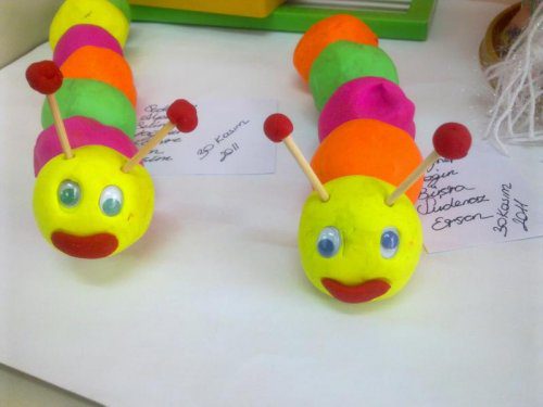 Top haline getirilen oyun hamurları çöp şişe geçirilir göz ağız vs yapılır ve biter. Güle güle kullanınız…