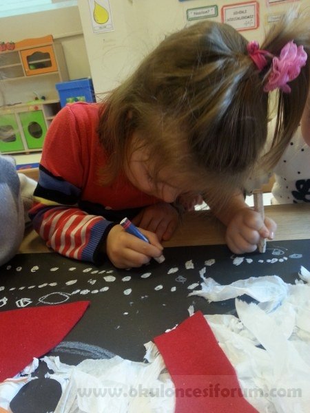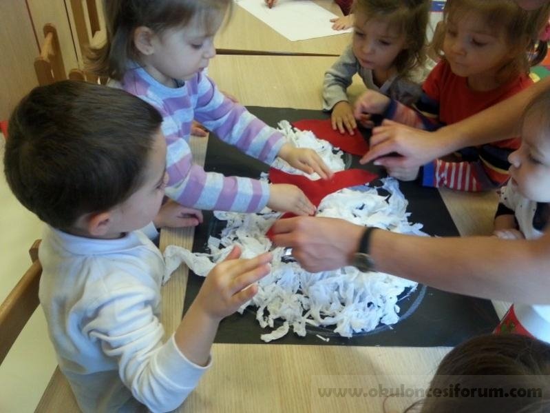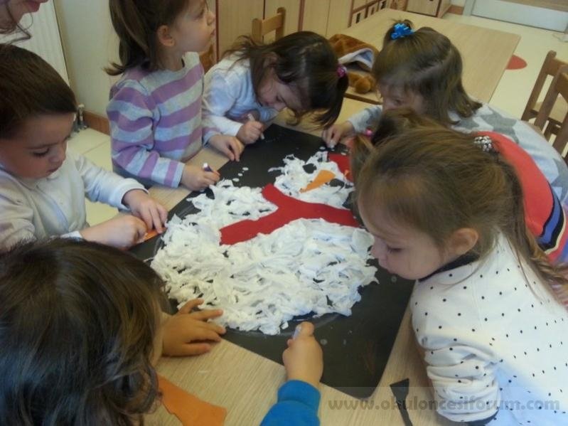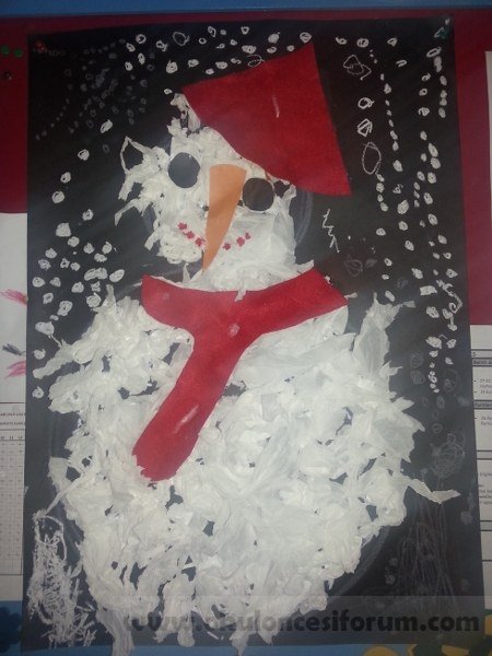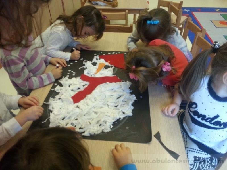 Tüm YazılarıKartopu Oynama Dramamızdan Sonra Grapon Kağıtlarımızı Değerlendirerek Kardan Adam Etkinliğimizi Yaptık. Artık Materyallerden Faydalanarak Şapka, Atkı, Göz Ve Burun Yaptık. Pastel Boyalarımız ile Minik Daireler Yapıp Kar Taneleri Oluşturduk.