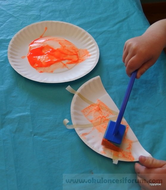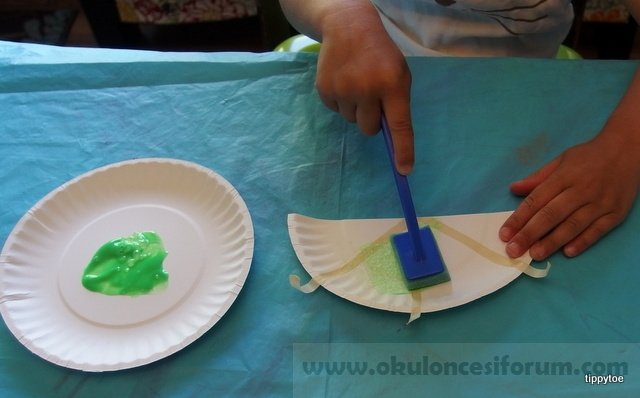 köpük tabak üzerine,bantla dilimleri ayrılmış,sünger baskısı yaptıktan sonra,kuruyunca bantları çıkarıyoruz..