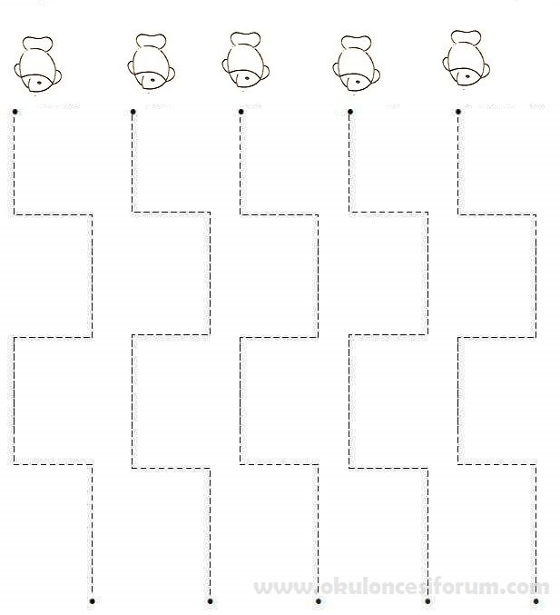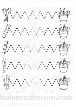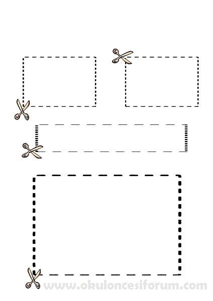 Kesilecek İlk çizgilerin çok kalın olması çocuğun kalın çizgiden ince çizgiye geçmesi en mantıklı olanıdır. Böylece çocuğun ”yanlış kestim,kesemedim, beceremedim,taşırdım” duygusunu hissettirmeden karton kesme çalışması yapmış olacaktır,. Kalın uçlu bir keçeli kalem ile kartonların üzerine çizgiler çizebilirsiniz…