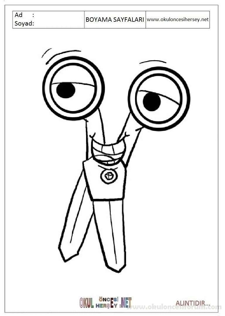 Aşağıdaki görsellerden seçeceğiniz makas kalıbı ile bir kukla yapıp çocukların makas ile tanışmalarını eğlenceli hale getirebilirsiniz. Makasın keskin olduğu ve tehlikeli eşyalardan biri olduğu,nereden ve hangi parmaklarla tutulması gerektiği, nasıl açılıp kapanması gerektiğini ve en önemlisi keskin olduğu için hep masa hizasında gözlerden uzak tutulması gerektiği belirtilmelidir. Makas kukla ile doğru tutmalarına, denemeler yapmalarına tutarken öğretmen eşliğinde ”kes kes kes dur”sözel yönergelerini söylemelerine rehber olunmalıdır.