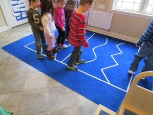 Okul öncesi çocukları;lideri takip oyunu olarak oynarlar bu oyunu… (Bantla yapılmış) Zigzag,dalgalı,düz çizgiler üzerinde önce yavaş sonra hızlanarak yürürler çocuklar… arabalarıyla da oynayabilirler, çizgiler üzerinde… Işıklı masaya çizgi çalışmaları konur ve üzerine aydınger yada parşömen kağıt konarak kalemle üzerinden giderler. “tahta kalemiyle çizersek çizgilerimizi ışıklı masa olmadan da rahatça üzerinden çizebilirler. çizgi-takip el-göz koordinasyonu ön … Okul öncesinde ilk günlerde çizgilerle tanışma okumayı sürdür