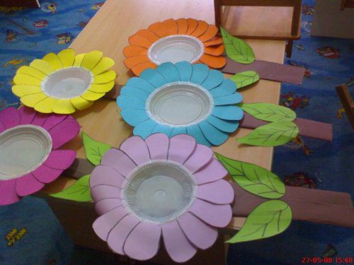 plastik tabaklardan neler yapmadik ki anaokullumuzda şimdide sira çiçeklerde