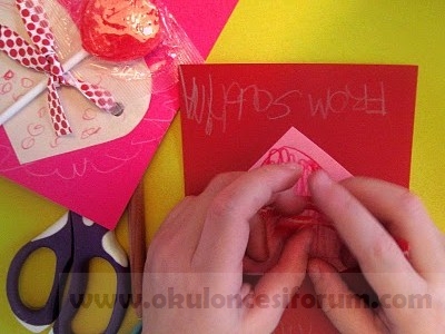 Tüm YazılarıKartımızın üzerine kestiğimiz kalp kalıbını yapıştırıyoruz..