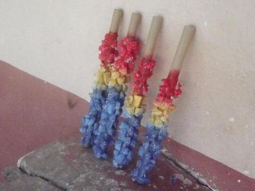 Kol ve bacaklara straforları bölerek çocuklar yapıştırdıktan sonra sprey boya ile ben boyadım.
