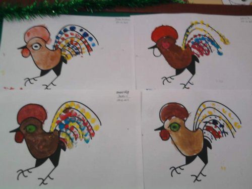 Sulu Boya-Parmak Boyası ile Horoz(kalıplı)