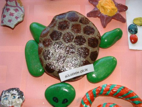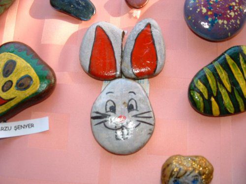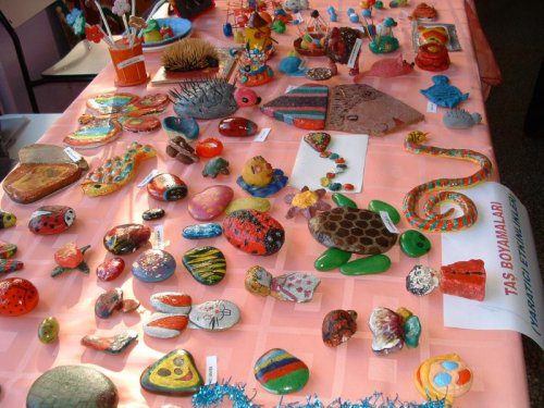 OMÜ okulöncesi öğretmenliği sergisinden taş boyama örnekleri…