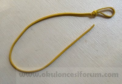 Bir dize yapmak için büyük bir lastik bant kesin. Yaklaşık 10- 12 santim ölçmek gerekir. Bir çocuğun parmağını sığdırmak için bir ucunda bir düğüm yapın.
