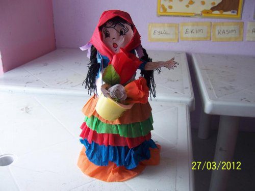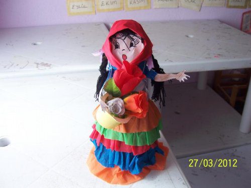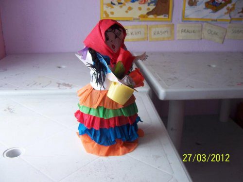 annemim atmayıp bana lazım olur düşüncesiyle elime tutuşturduğu yumuşatıcı şişesinden yaptım. “ben sorumluluğumu biliyorum” çalışması yapıyoruz çocuklar kendileri gruplarını oluşturdu ve herkes düzenlemek istediği köşeyi seçti bir hafta boyunca en güzel düzenlenen köşeye bir oyuncak sürprizim olacak dedim ve her köşe en iyi olmak için uğraştı çünkü artık oyuncak toplarken sıkılıyolar. veeeeee kızlar evcilik köşesini toplama birincisi oldu. acaba bu şişeden ne yapabilirim derken bu güzel kız çıktı ortaya baş köşeyi de kaptı. sene sonunda bu oyuncağı köşede çok çalışan öğrencim ayşegüle hediye edeceğim. umarım beğenirsiniz.